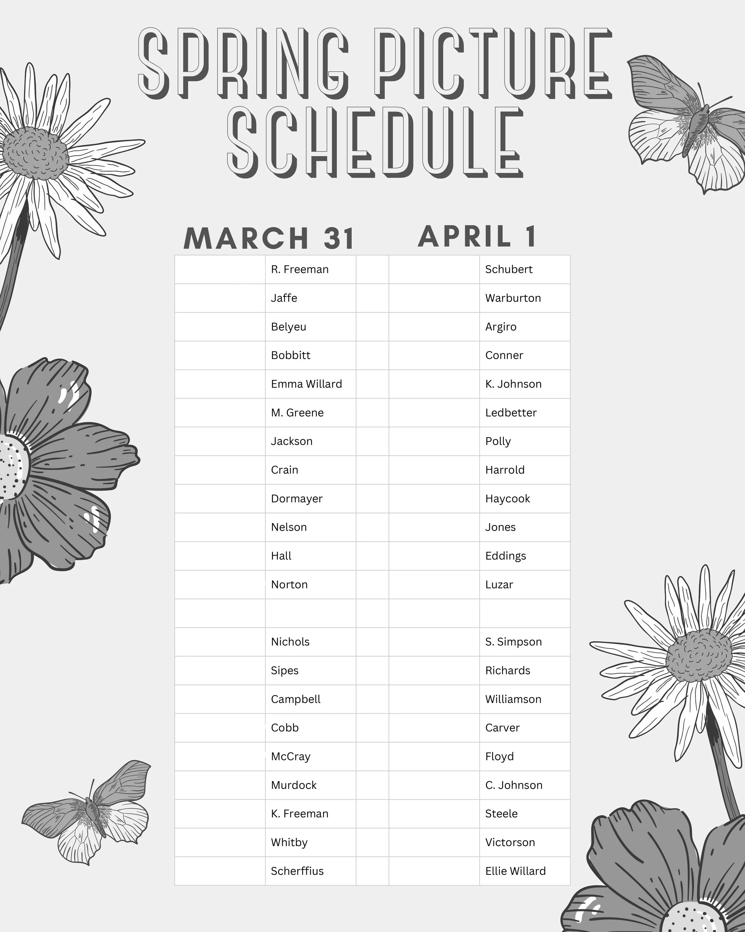 SPRING SCHOOL PHOTOS 2026